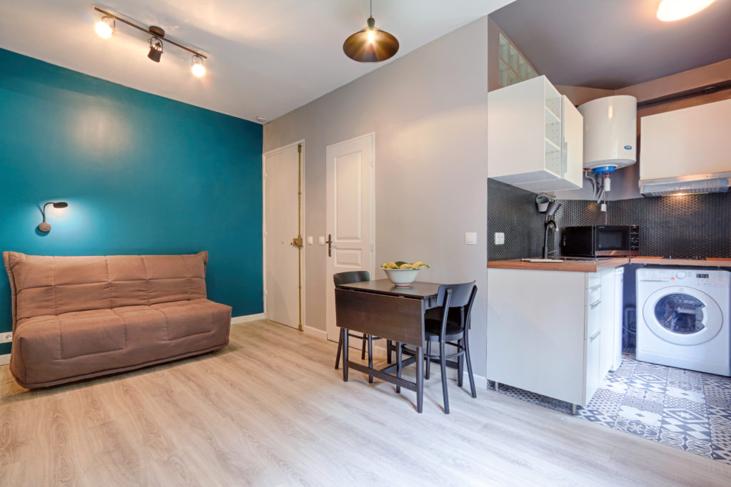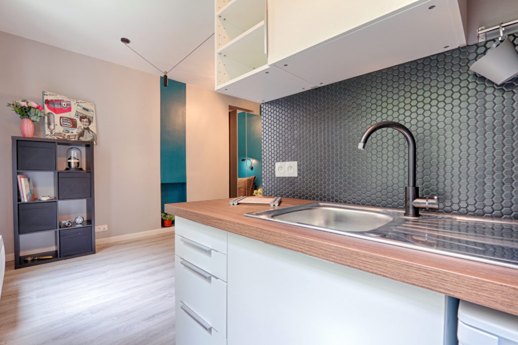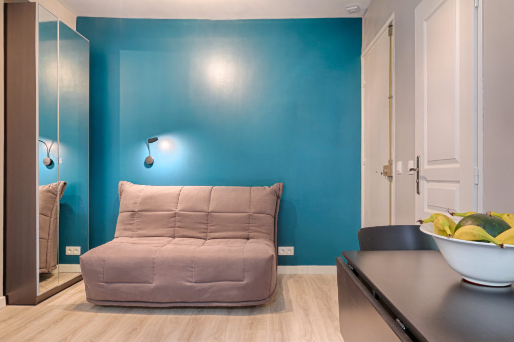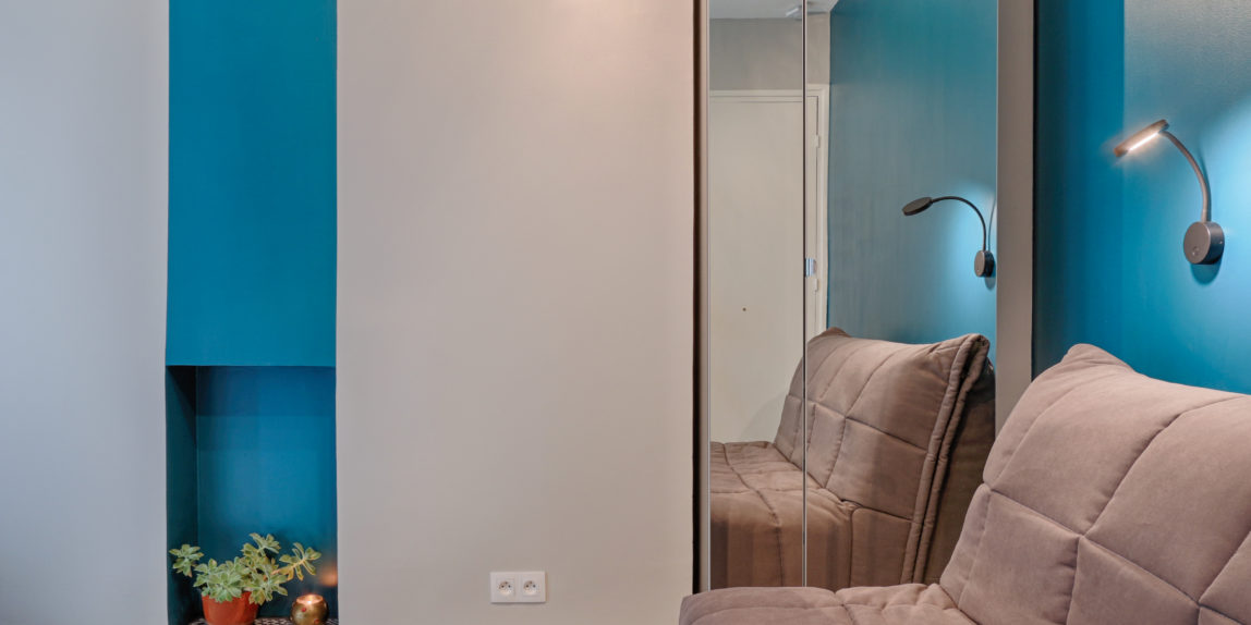 18 SQM this is a standard size for a studio apartment in Paris! This must include living area, sleeping facility, kitchen and bathroom… Lets say it can be a challenge to fit it all in, but it wouldn’t be interesting if it wasn’t.