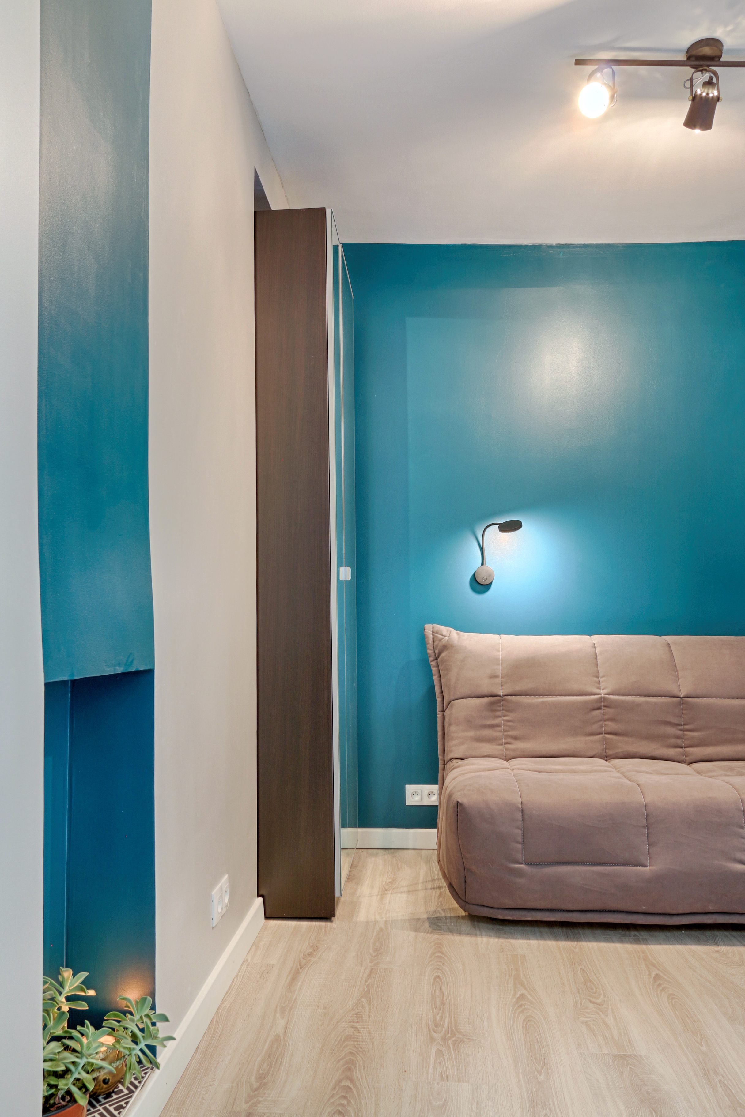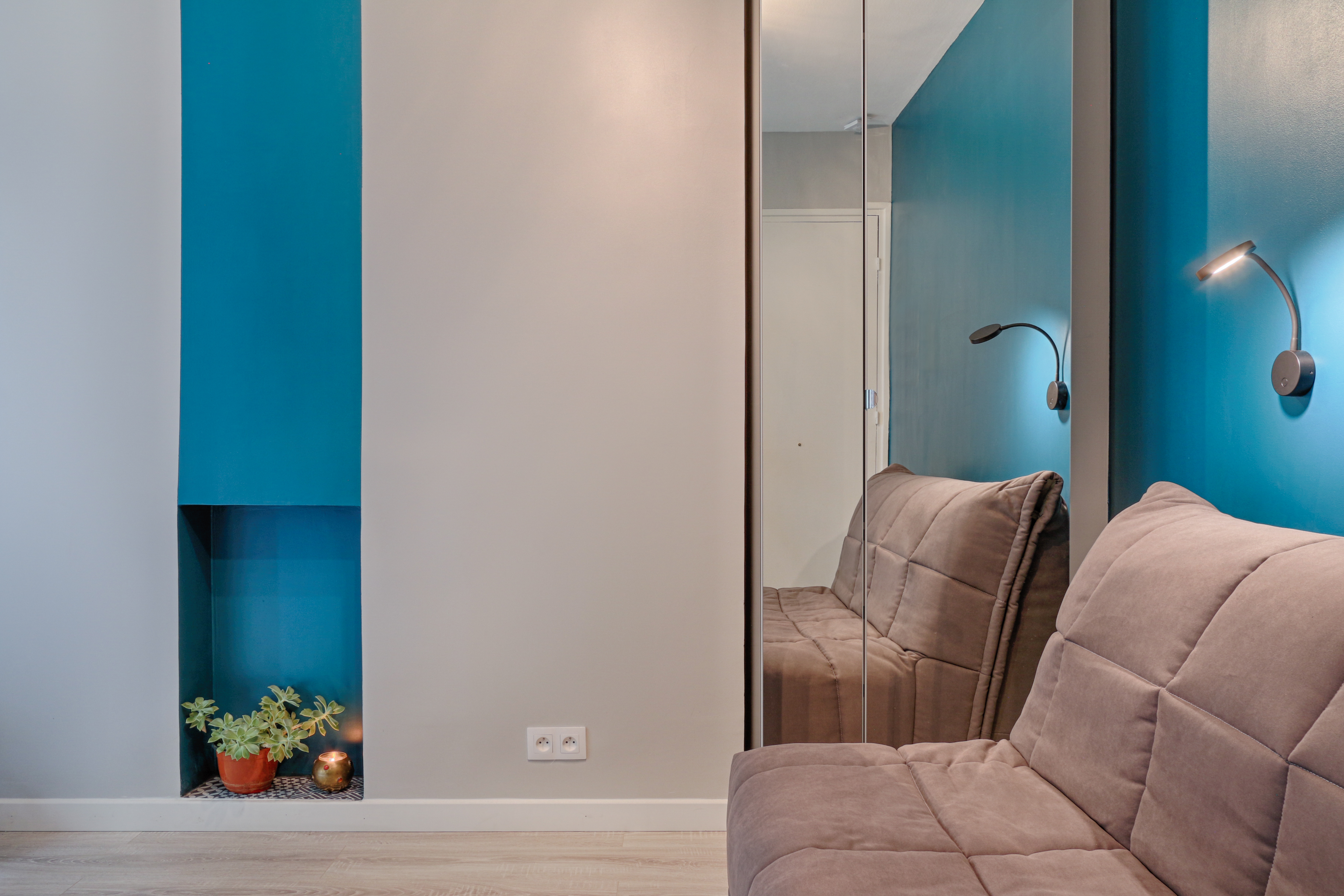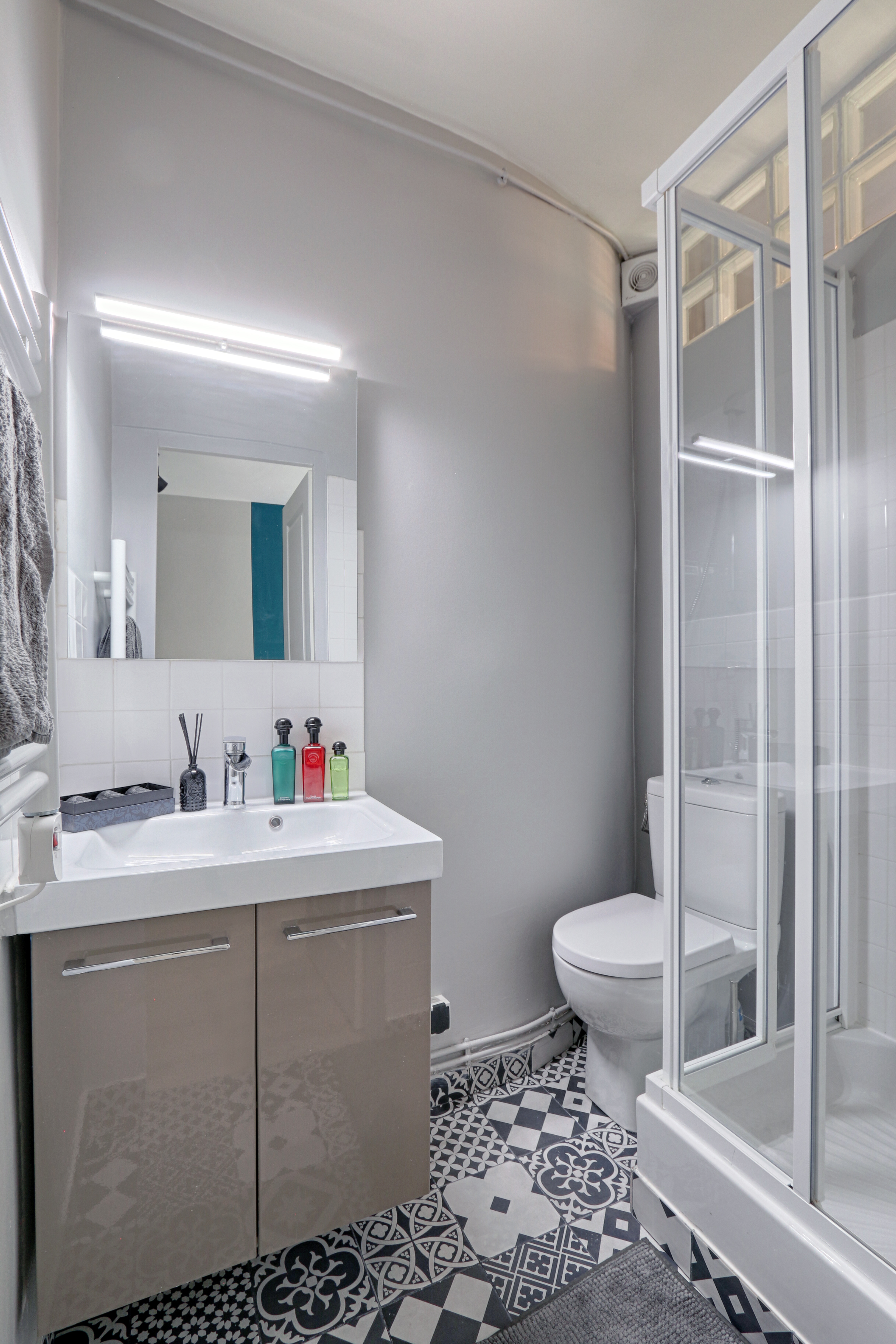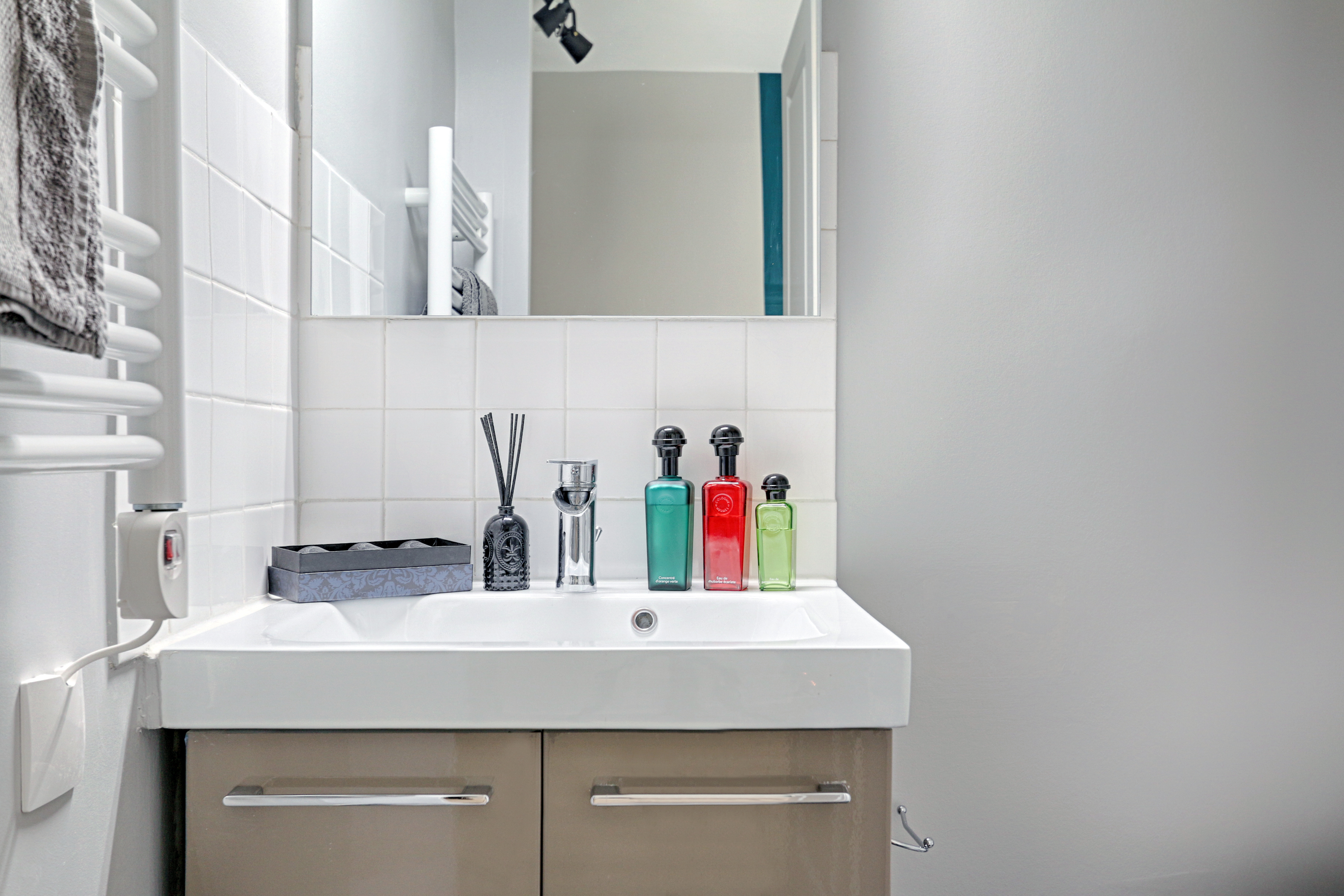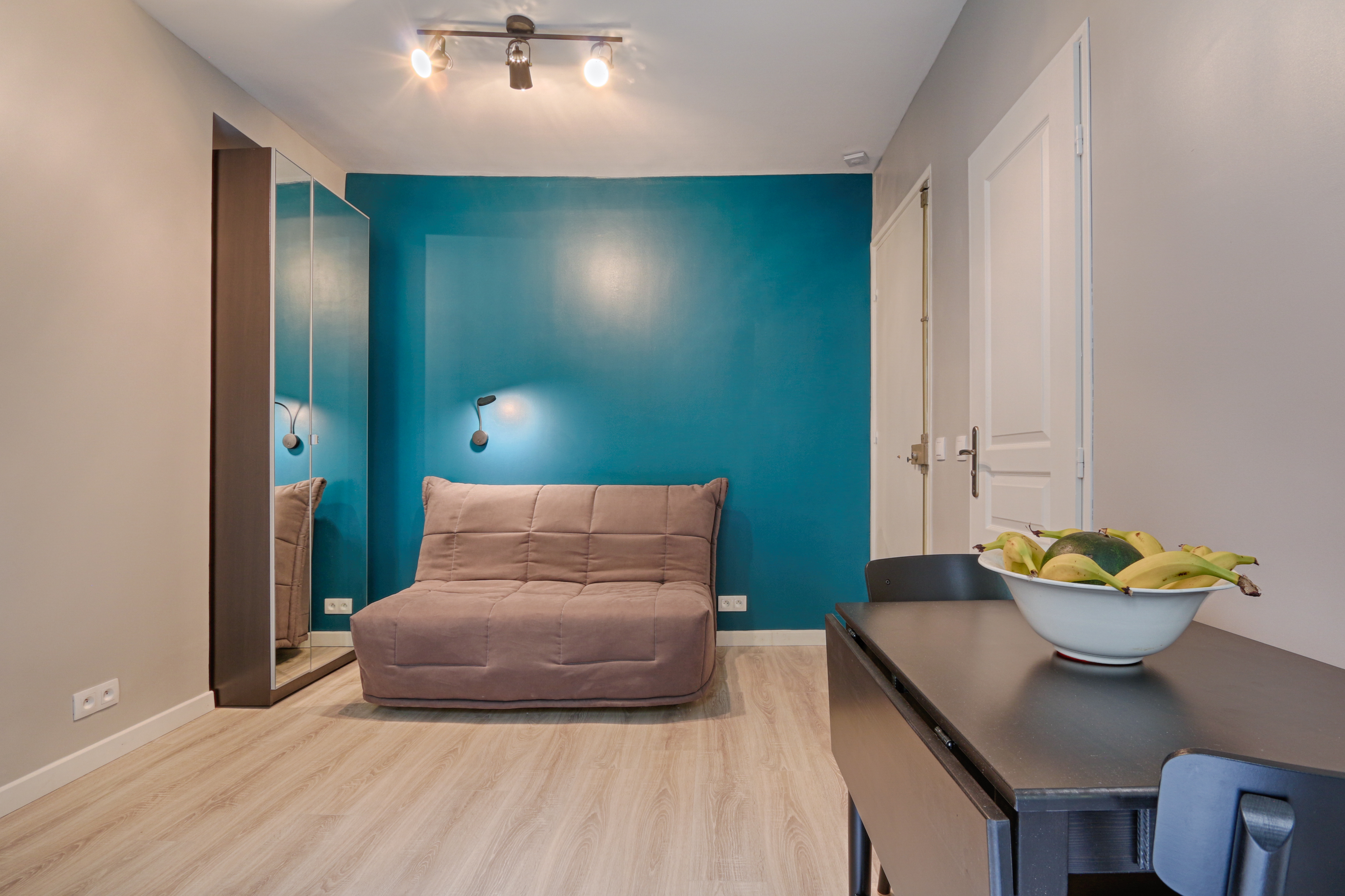 The idea for this rental was to get a style not linked to the fashion on trend at the moment, so it lasts in the years to come. A special thought was given while choosing the different materials (floor coverings, finish of paint, light fixtures…) on their durability and longevity, how easy their maintenance is and resistant to heavy usage by the tenants.