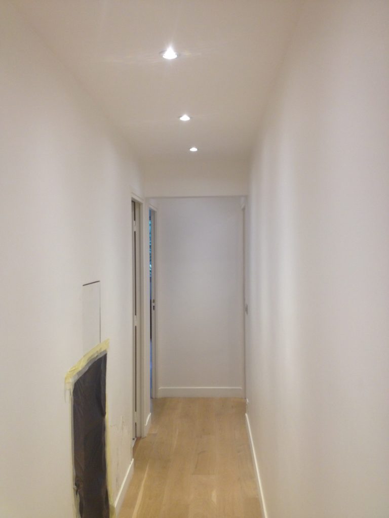 No structural work was needed, but we needed to find a way to “break” this endless hallway connecting to another corridor. In the bedroom, the dressing needed to be closed off and united to the whole room. In the lounge, the linear of the walls needed to be broken and all was too horizontal. This linear feel was aggravated by the TV cabinet and shelving units at the end wall.