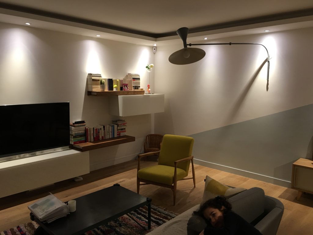 Works had already been done in this apartment and white was the color chosen in order to keep as much light as possible. This is a common thing to do, especially in Paris. This flat was on the ground floor (with garden), so the natural light was an issue and white was suppose to maximise it’s brightness. The desired effect was reached, but after a while, they felt like the were living in a sterile environment like a hospital and all their designer furniture was just lost in the space created.